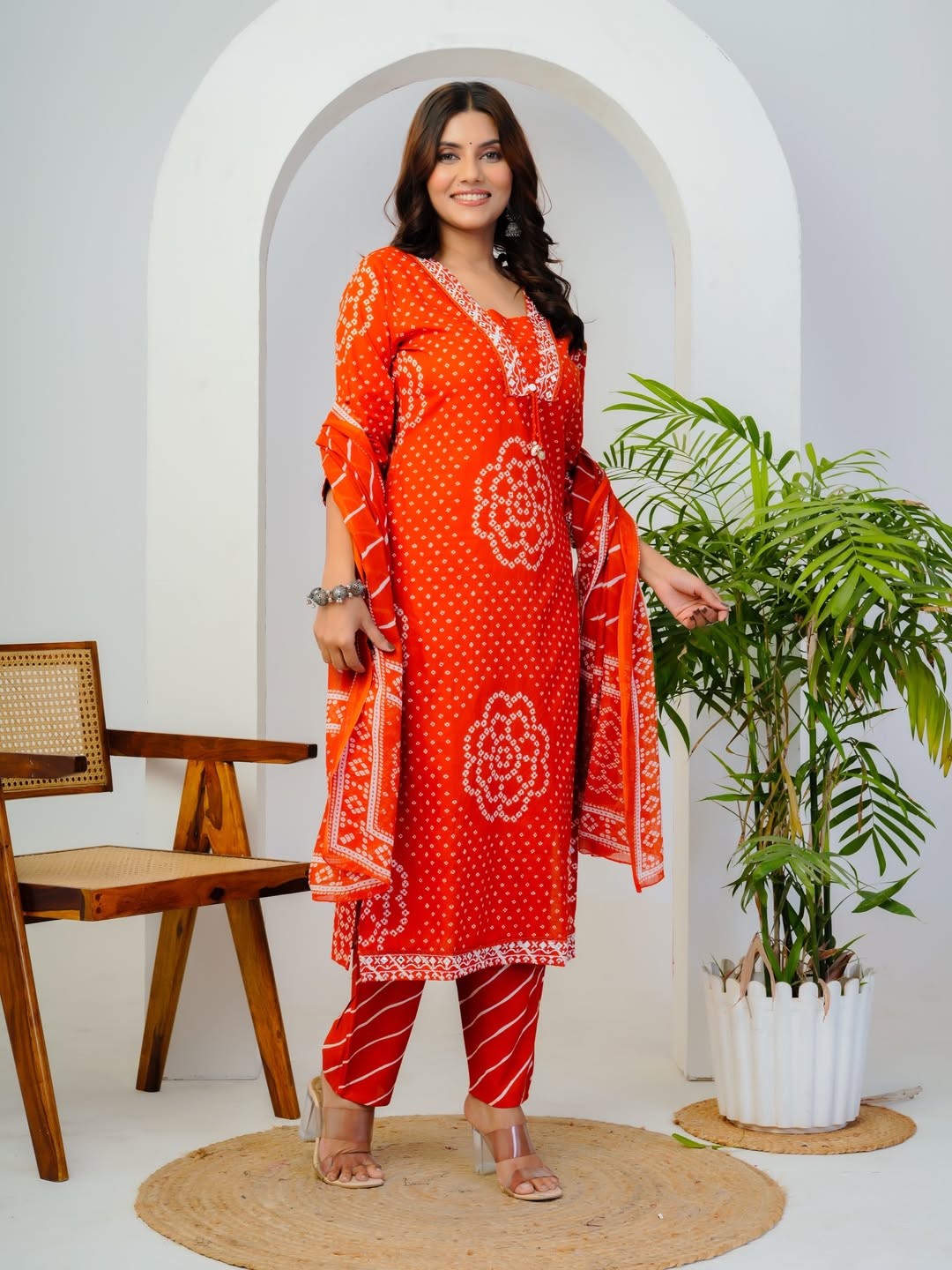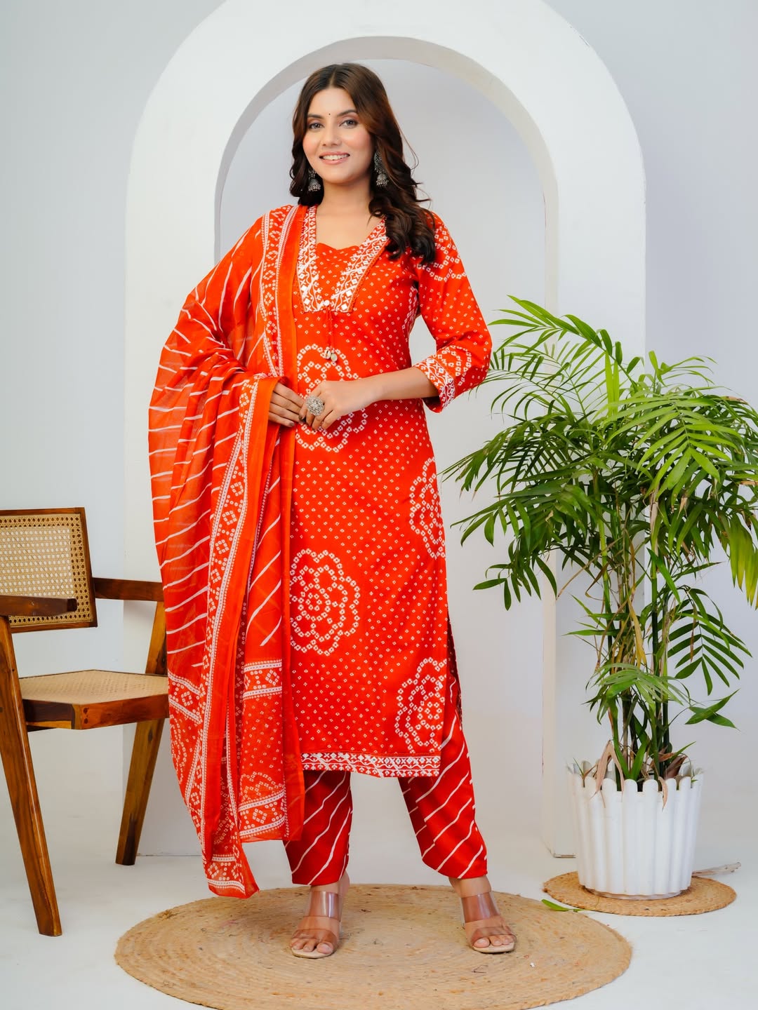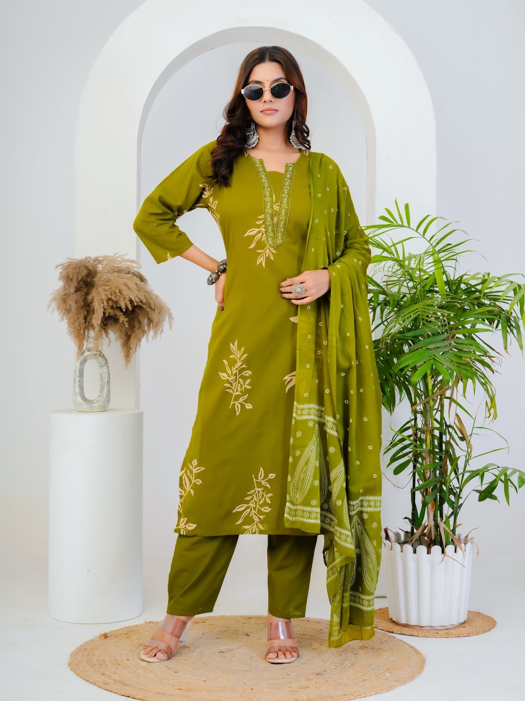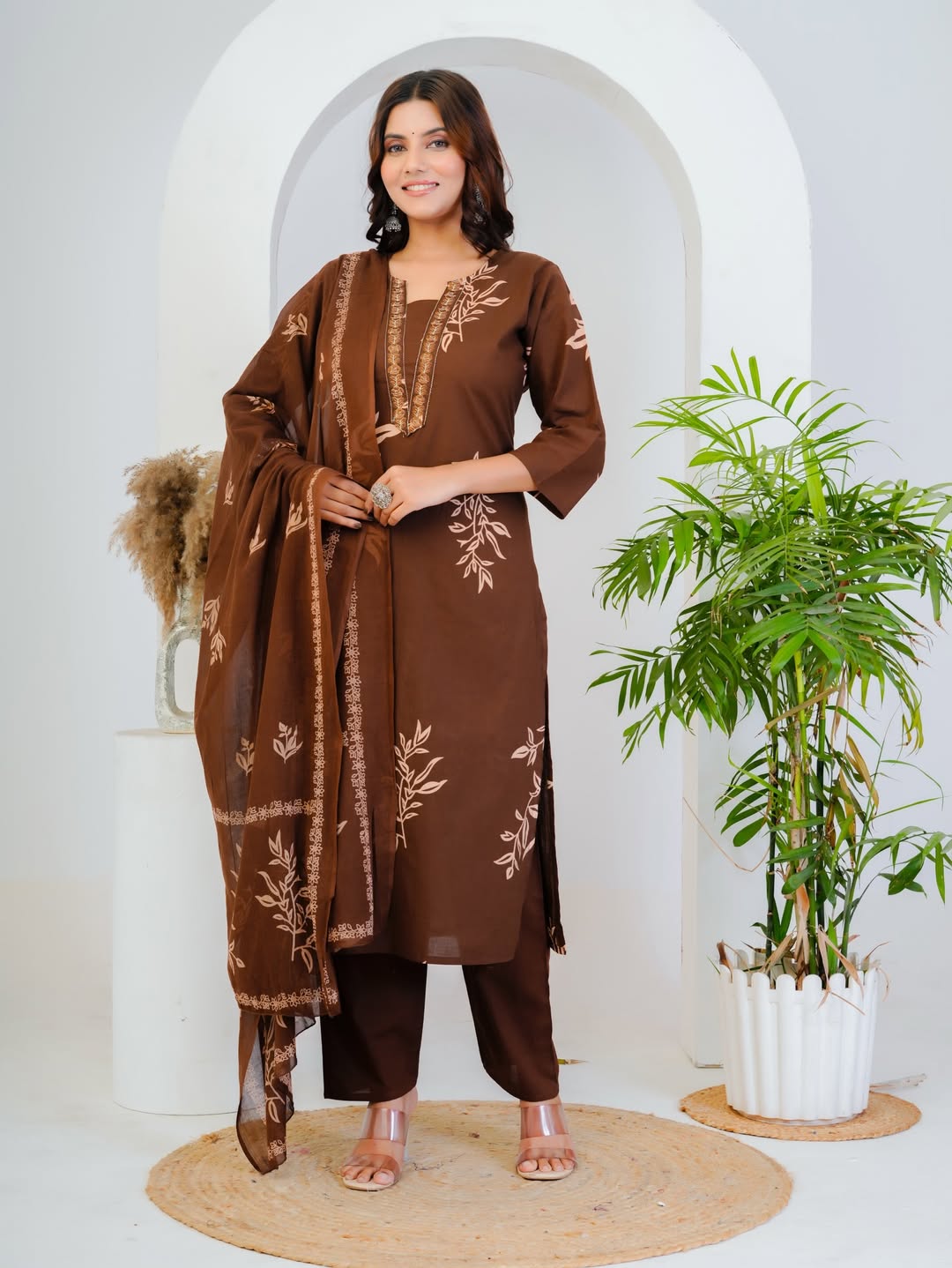 Bna Bnaya Floral Print Cotton Embroidered Kurta Pant Dupatta set