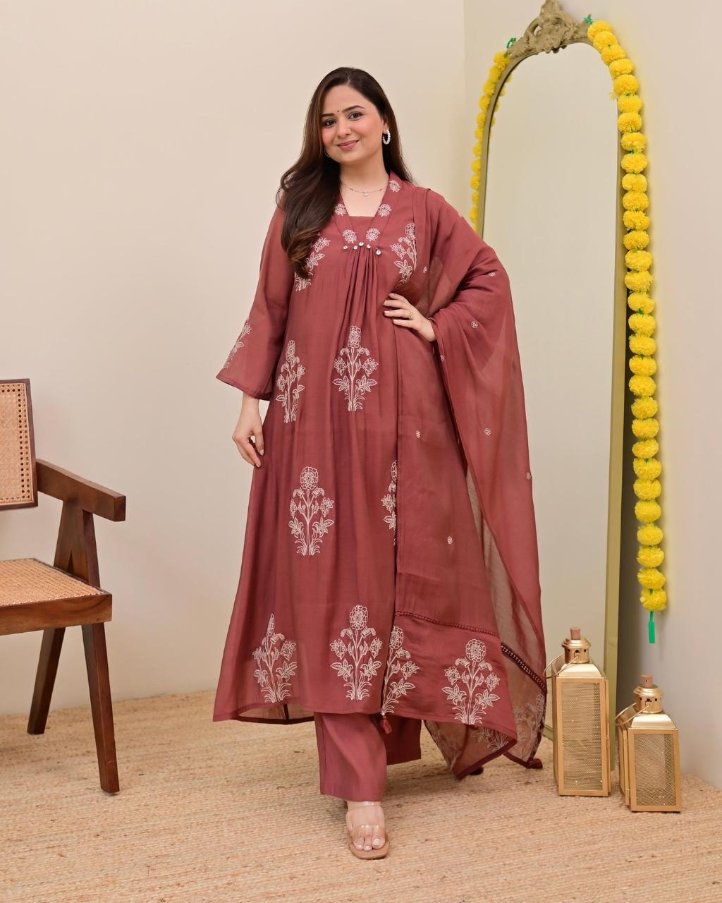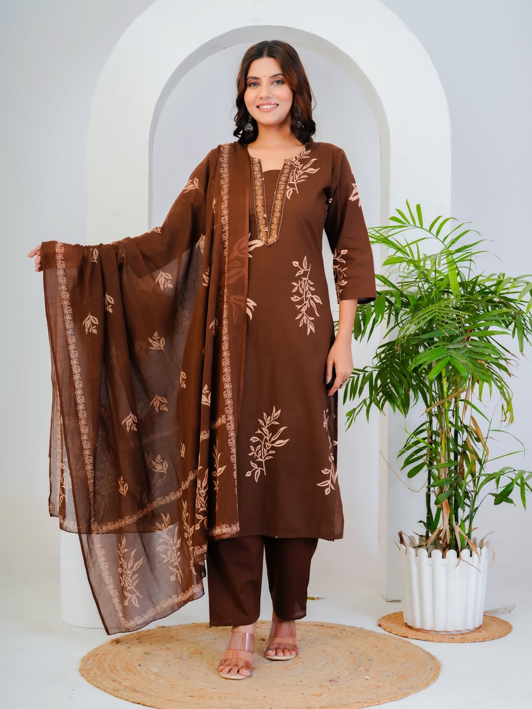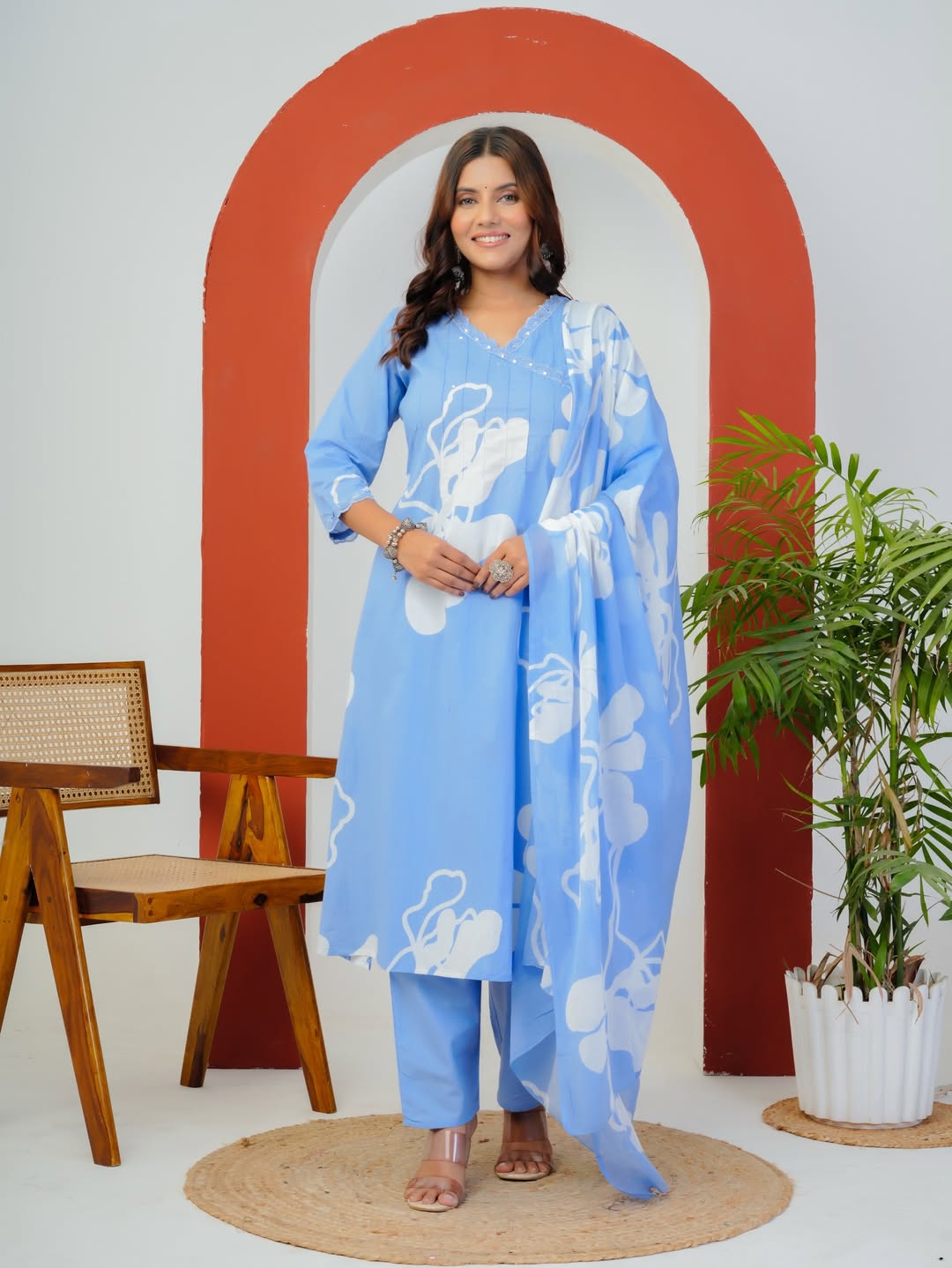 Bna Bnaya Floral Print Cotton Embroidered Kurta Pant Dupatta set